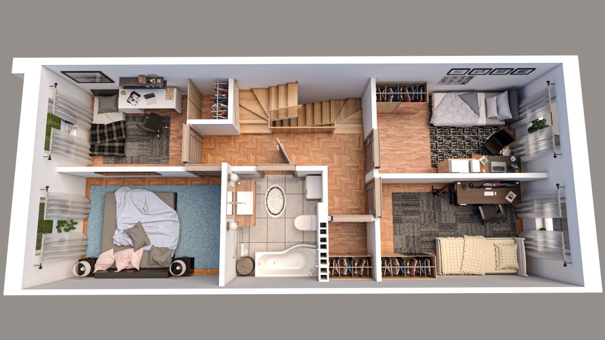 4 pokoje: 10,35 m² | 10,35 m² | 11,19 m² | 8,26 m²