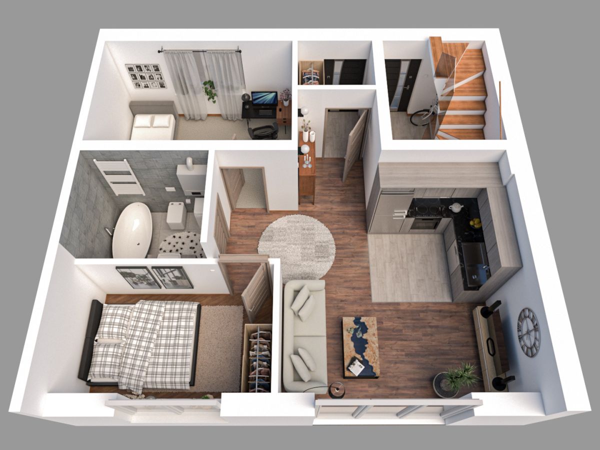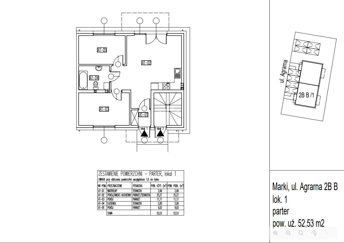 Całkowita powierzchnia obejmuje salon z aneksem kuchennym (25,27 m²), dwa pokoje (11,17 m² i 9,03 m²), łazienkę (5 m²) oraz wiatrołap (2,06 m²). Dodatkowym atutem jest ogród o pow. 37 m² i dwa miejsca parkingowe w cenie. Budynek bezczynszowy, tylko 4 lokale w kameralnej bryle.