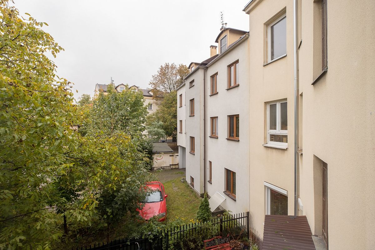 Przed kamienicą znajdują się miejsca parkingowe dla mieszkańców.